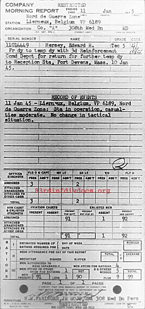 Morning report A/308M for January 11, 1945