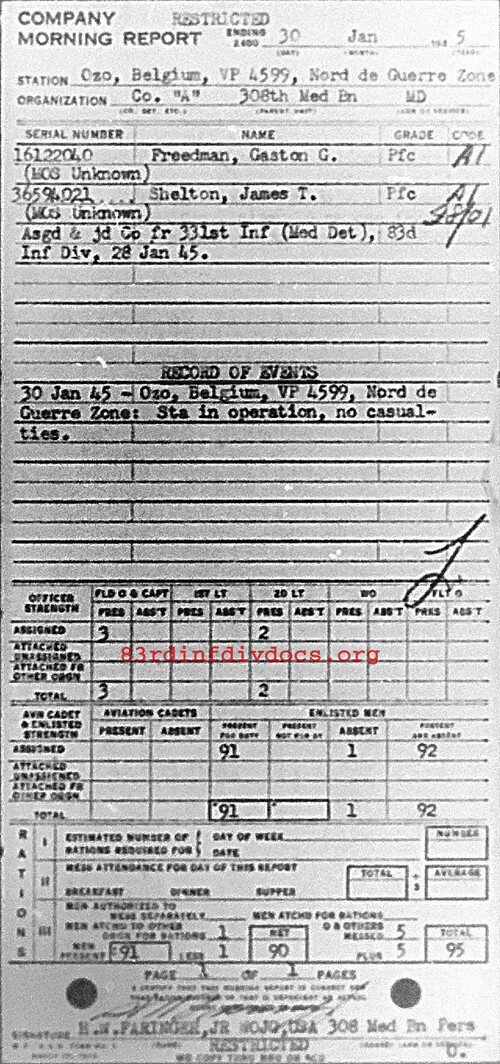 Morning report A/308M for January 30, 1945
