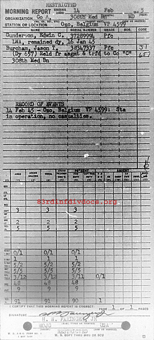 Morning report A/308M for February 14, 1945