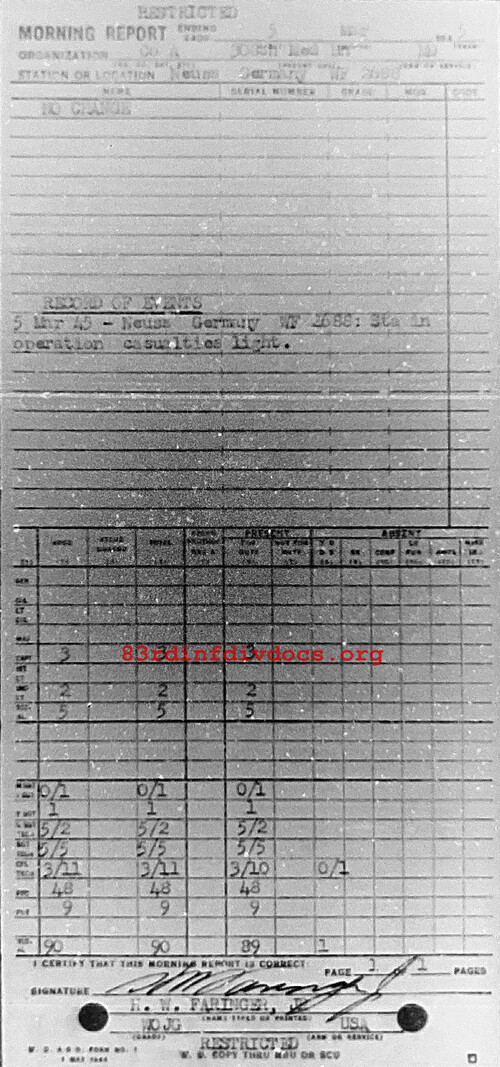 Morning report A/308M for March 5, 1945