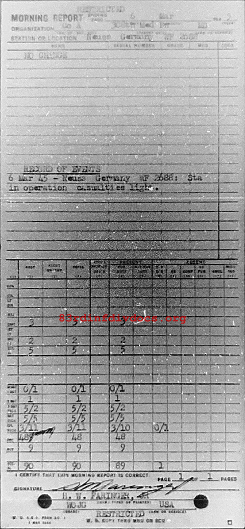 Morning report A/308M for March 6, 1945