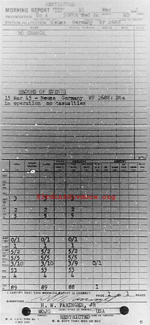 Morning report A/308M for March 15, 1945