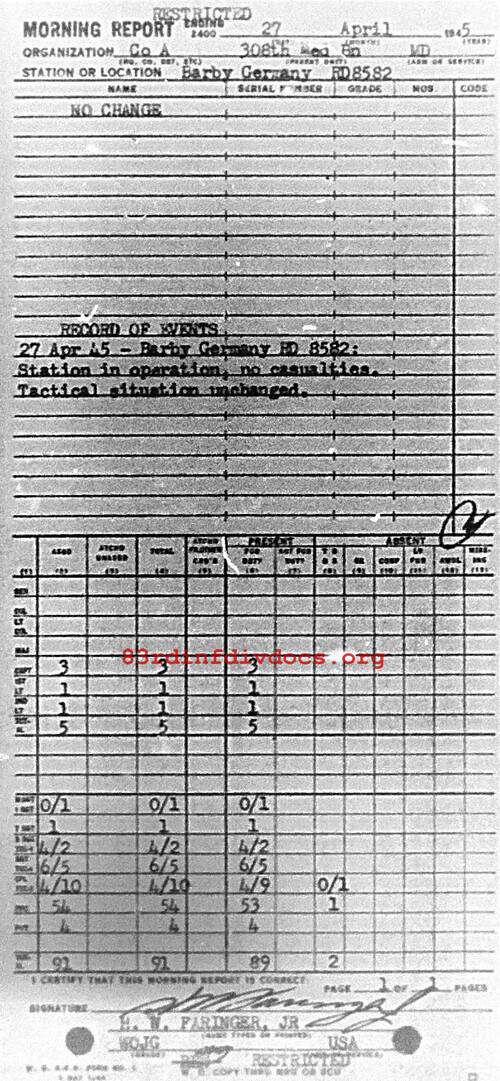 Morning report A/308M for April 27, 1945