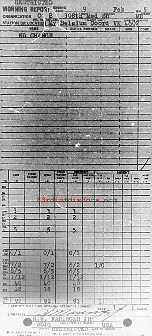 Morning report B/308M for February 9, 1945
