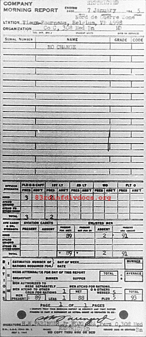 Morning report C/308M for January 7, 1945