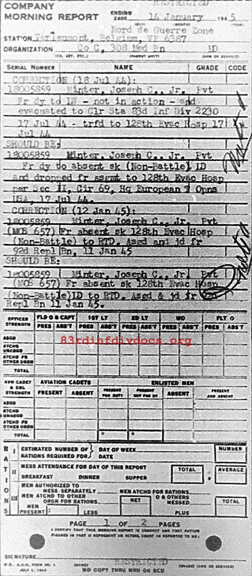 Morning report C/308M for January 14, 1945