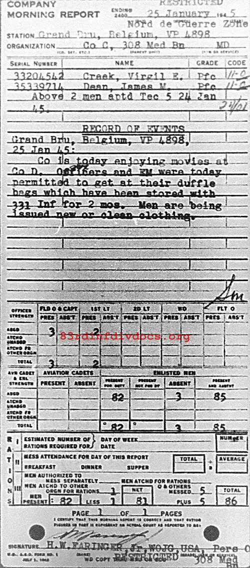 Morning report C/308M for January 25, 1945