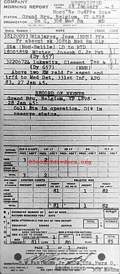 Morning report C/308M for January 28, 1945