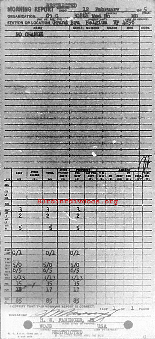 Morning report C/308M for February 12, 1945