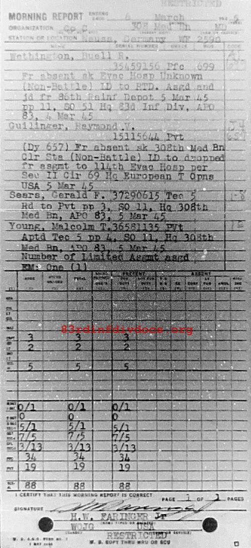 Morning report C/308M for March 6, 1945