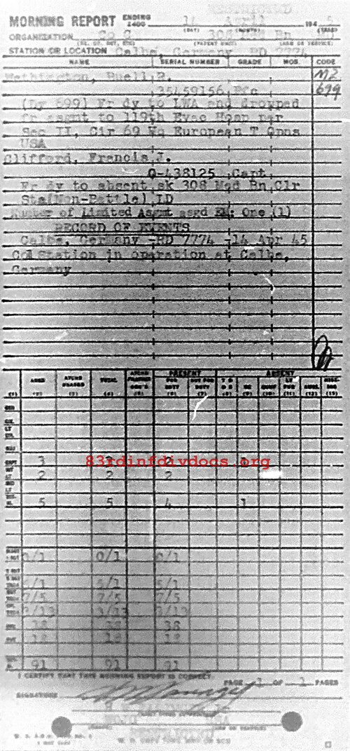 Morning report C/308M for April 14, 1945