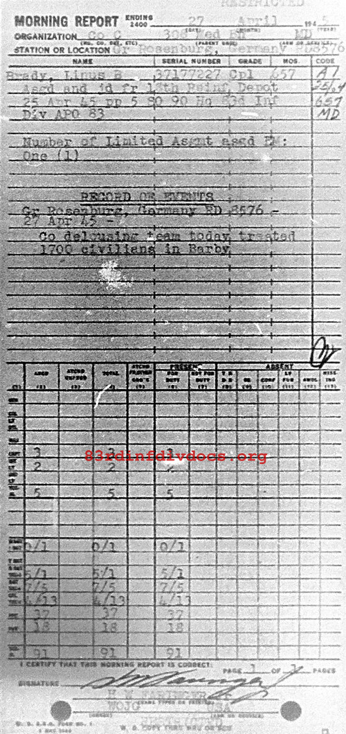 Morning report C/308M for April 27, 1945