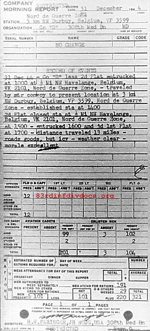 Morning report D/308M for December 31, 1944