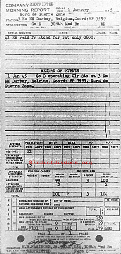 Morning report D/308M for January 1, 1945