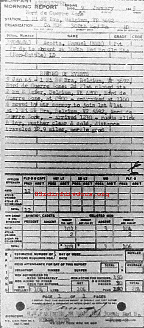 Morning report D/308M for January 9, 1945