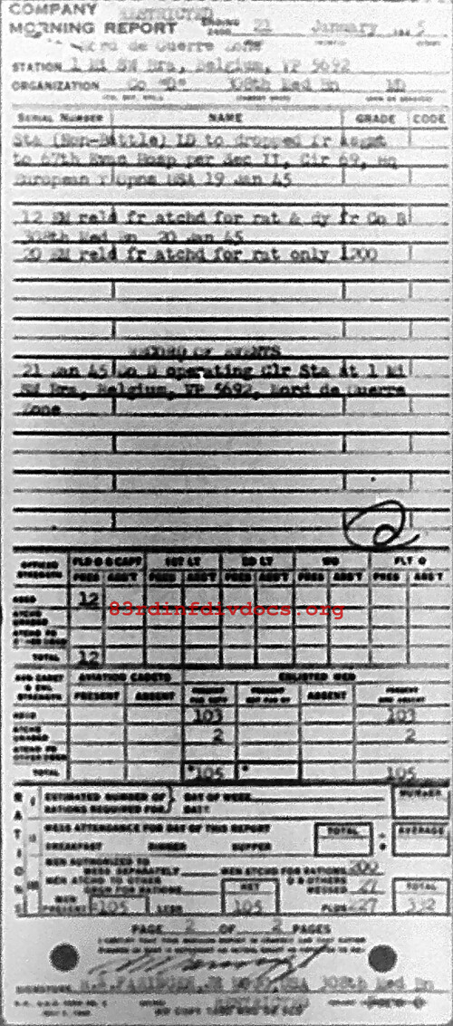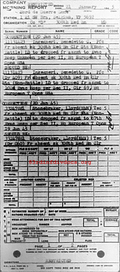 Morning report D/308M for January 21, 1945