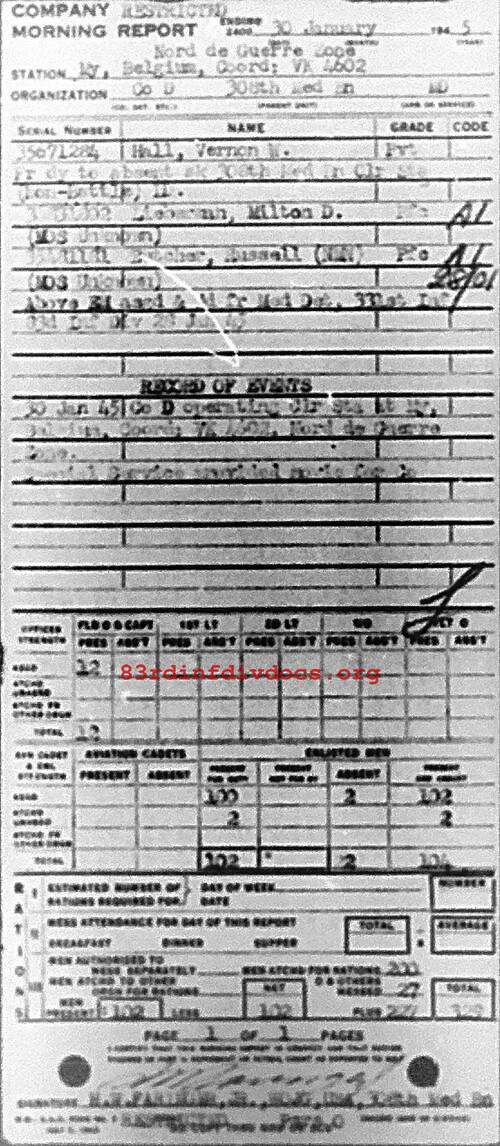 Morning report D/308M for January 30, 1945