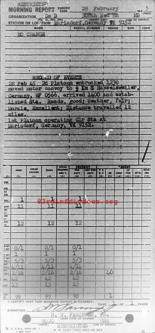 Morning report D/308M for February 28, 1945