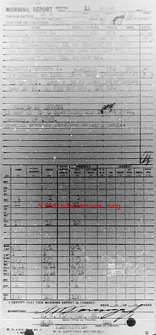 Morning report D/308M for March 11, 1945