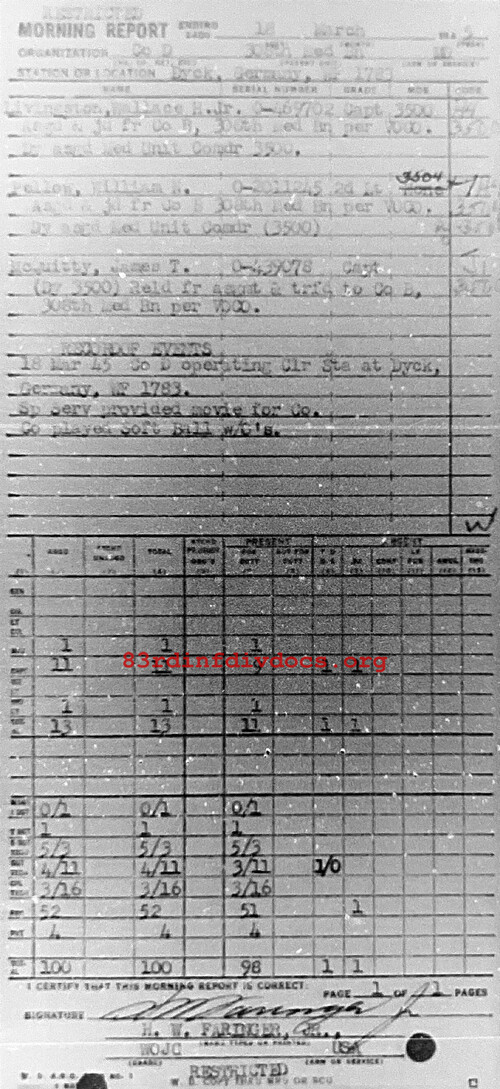 Morning report D/308M for March 18, 1945