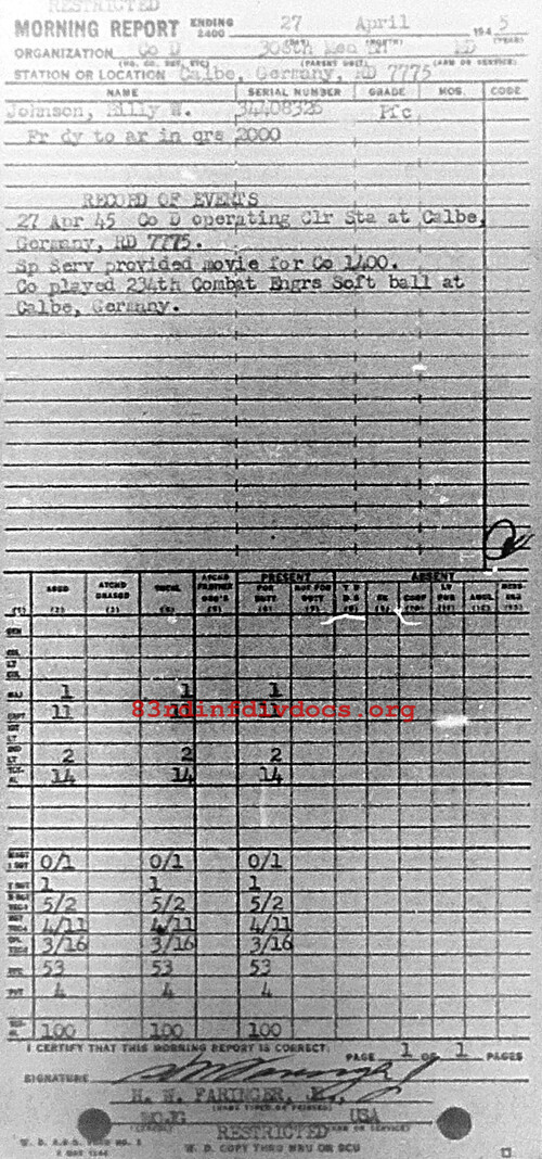 Morning report D/308M for April 27, 1945