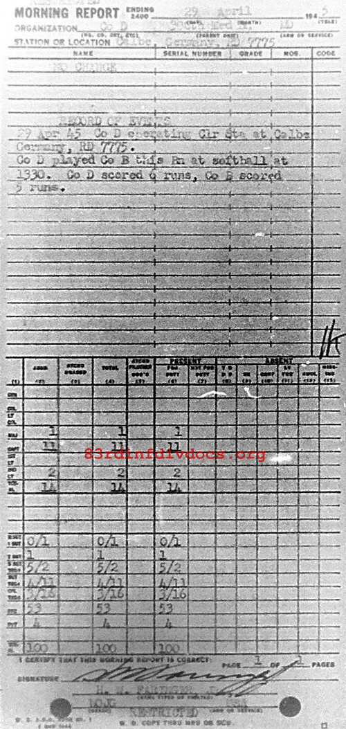 Morning report D/308M for April 29, 1945