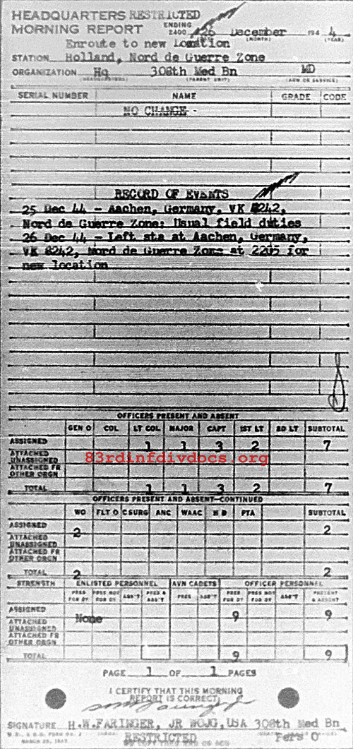 Morning report HQ/308M for December 26, 1944