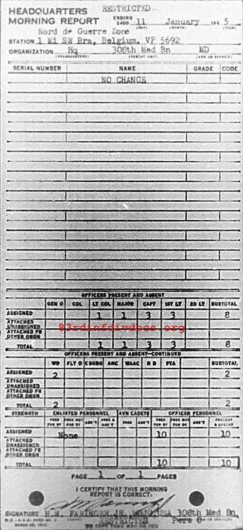 Morning report HQ/308M for January 11, 1945