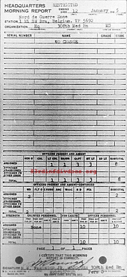Morning report HQ/308M for January 12, 1945