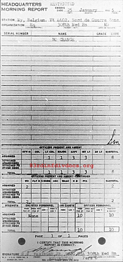 Morning report HQ/308M for January 25, 1945