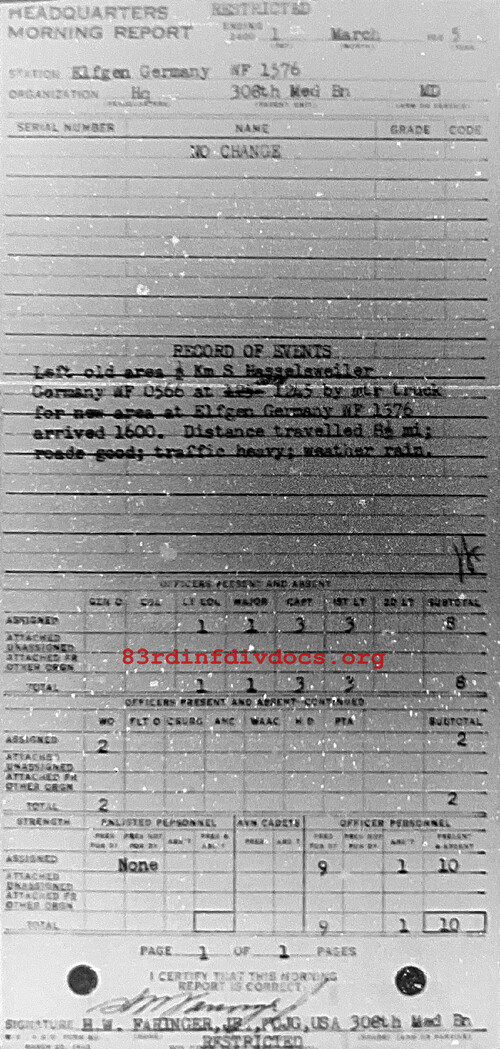 Left old area 1/2 Km S Hasselsweiler, Germany, wF0566 at 1245 by mtr truck for new area at Elfgen, Germany, wF1576, arrived 1600. Distance traveled 8 1/2 miles. Roads: Good. Traffic: Heavy. Weather: Rain.