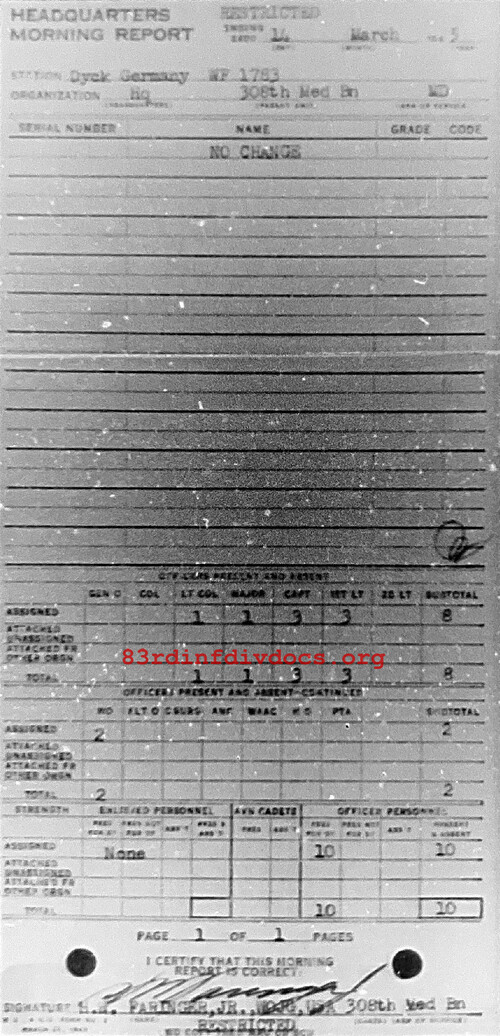 Morning report HQ/308M for March 14, 1945