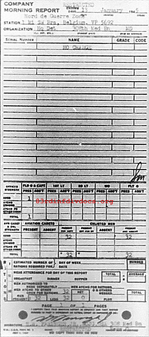 Morning report HQDET/308M for January 13, 1945