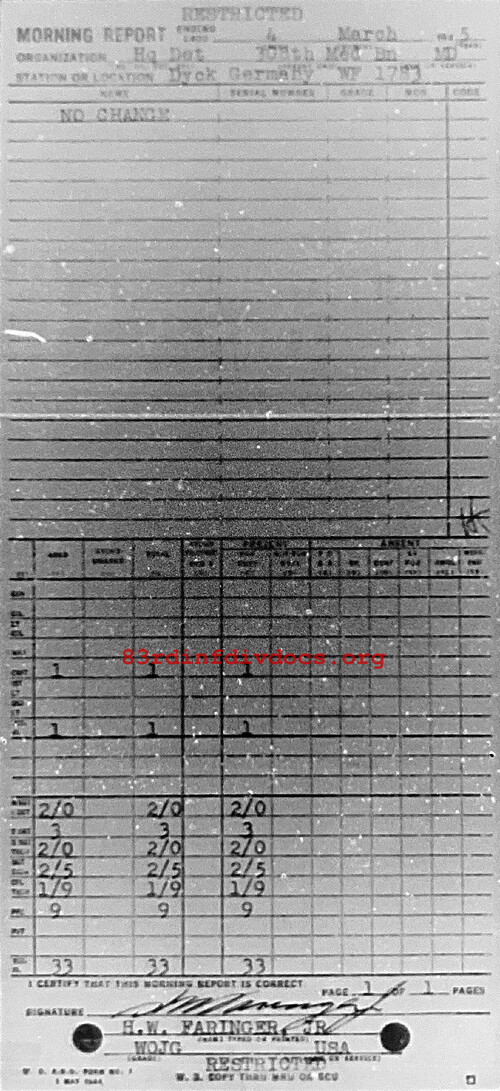 Morning report HQDET/308M for March 4, 1945