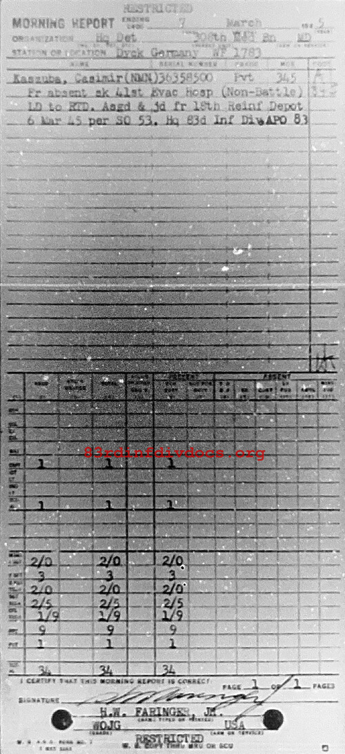 Morning report HQDET/308M for March 7, 1945