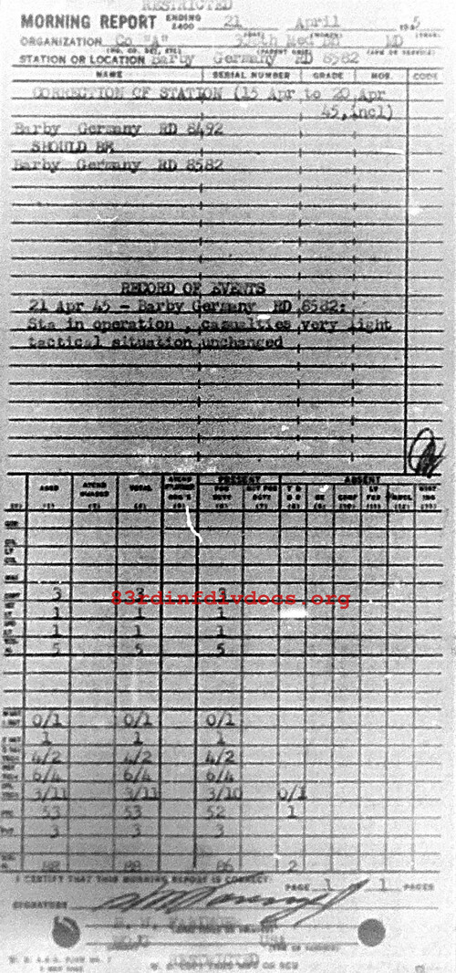 Morning report A/308M for April 21, 1945