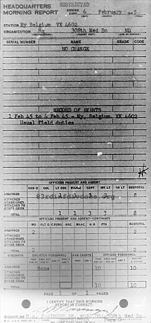 Morning report HQ/308M for February 6, 1945