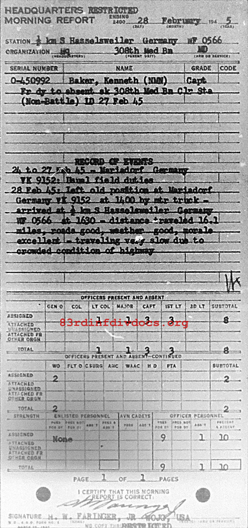 Morning report HQ/308M for February 28, 1945