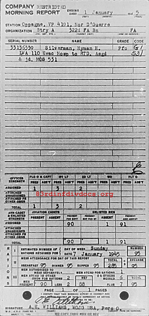 Morning report A/322FA for January 1, 1945