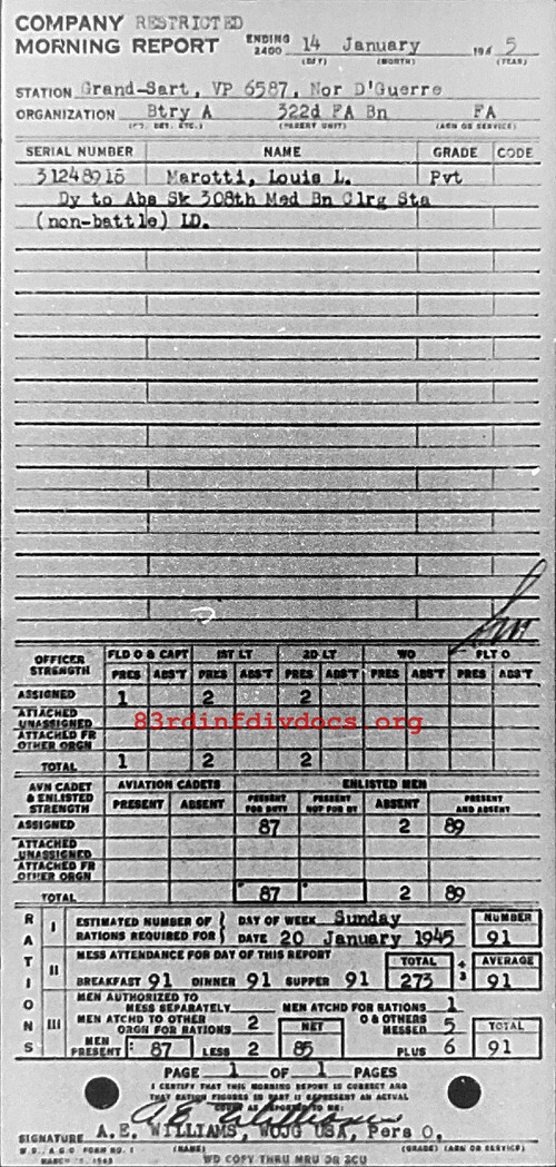 Morning report A/322FA for January 14, 1945