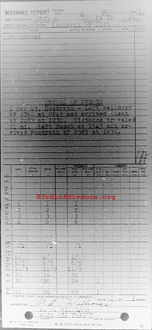 Morning report A/322FA for March 1, 1945