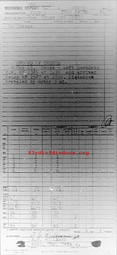Morning report A/322FA for March 2, 1945