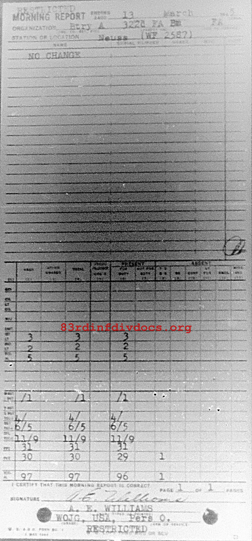 Morning report A/322FA for March 13, 1945