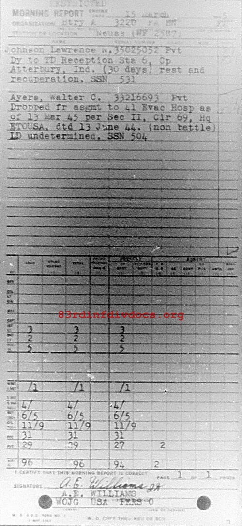 Morning report A/322FA for March 15, 1945