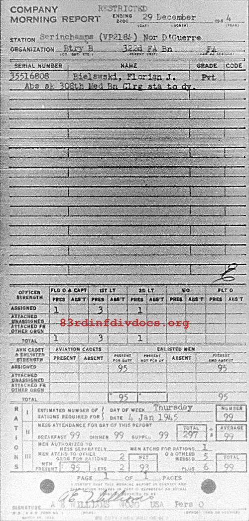 Morning report B/322FA for December 29, 1944