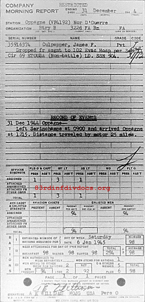 Morning report B/322FA for December 31, 1944