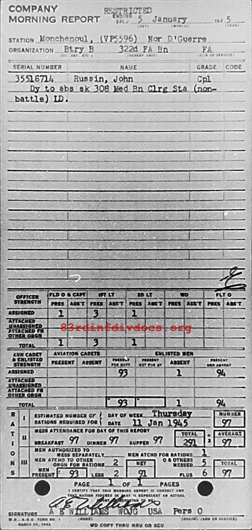 Morning report B/322FA for January 5, 1945