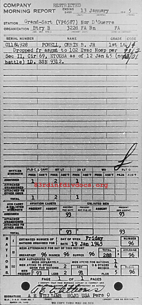 Morning report B/322FA for January 13, 1945
