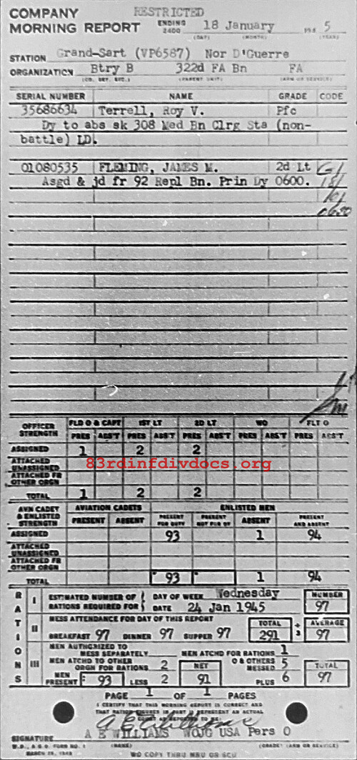 Morning report B/322FA for January 18, 1945