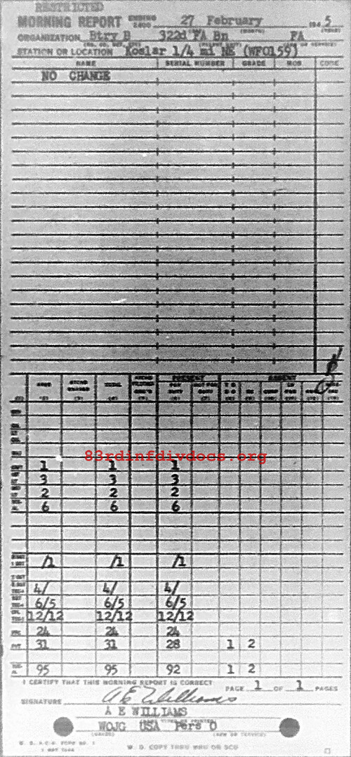 Morning report B/322FA for February 27, 1945